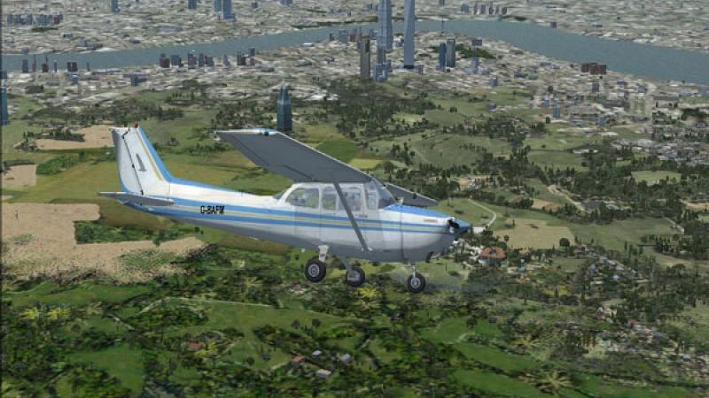 A. Flight Simulator uses a large number of textures to define the ground you see when flying. These textures are applied selectively, depending on the type of ground you are flying above. Farm, rock, desert, fields, villages, towns, cities, forest, woods and so on. They are also varied depending on the part of the world you are in. So, for instance, forests in England will look different from forests in Australia. Finally they are varied according to the season of the year.
