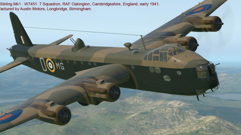- Stirling Mk.1: W7451. 7 Squadron, RAF Oakington, Cambridgeshire, England, early 1941. Manufactured by Austin Motors, Longbridge, Birmingham.