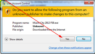 If another window pops up displaying, "Do you want to allow the following program from an unknown publisher to make changes to this computer", you must also click the "Yes" button: